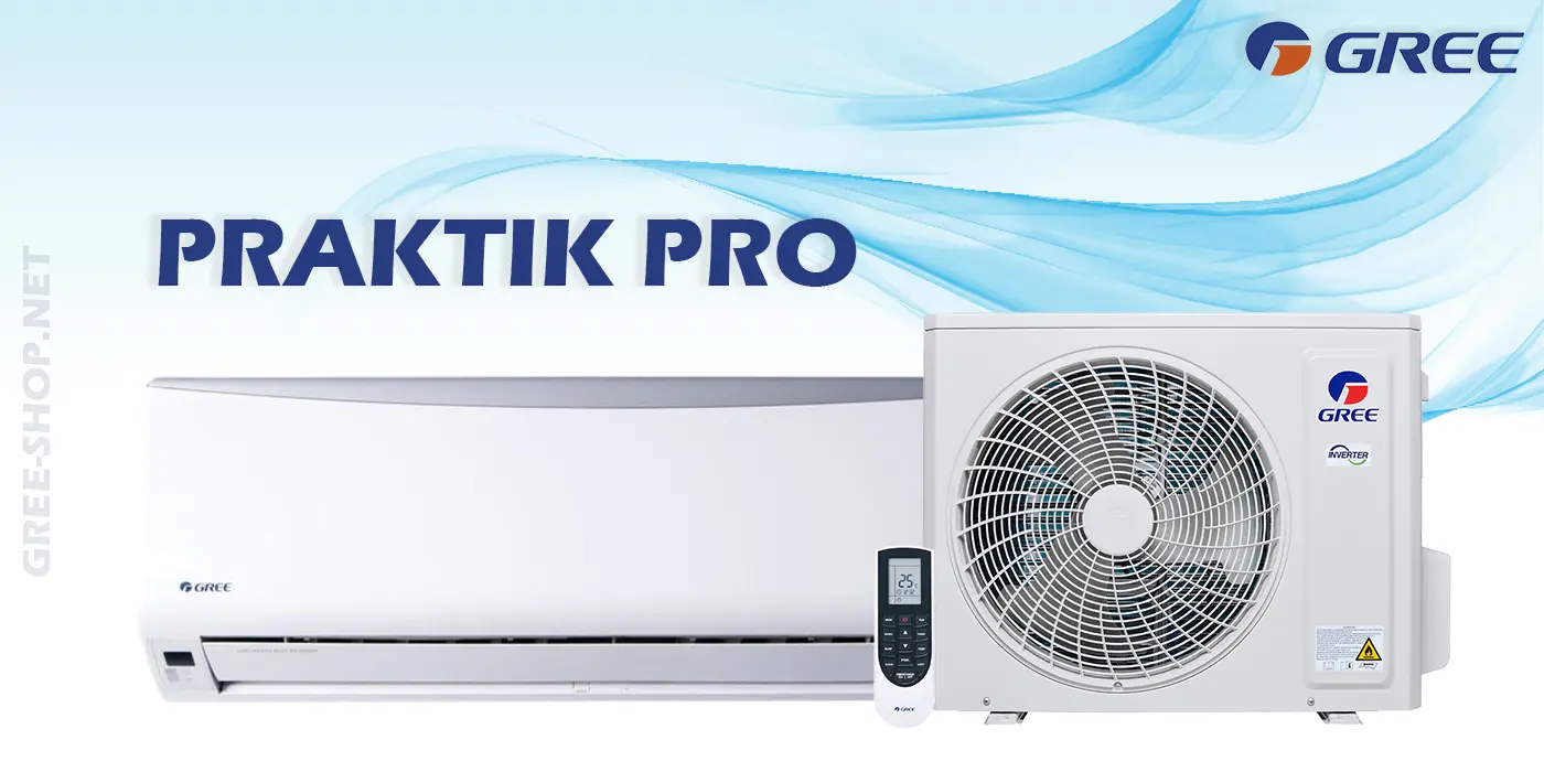 Побутові кондиціонери Gree PRAKTIK PRO Inverter – доступна інверторна спліт система, яка має повний набір необхідних функцій для створення комфортного клімату. Дана спліт-система має високий клас енергозбереження А+ і здатна працювати на тепло при при зовнішній температурі до -20°С. З огляду на клімат в Україні, можна сміливо стверджувати, що це чудові показники для ефективної роботи цілий рік.
