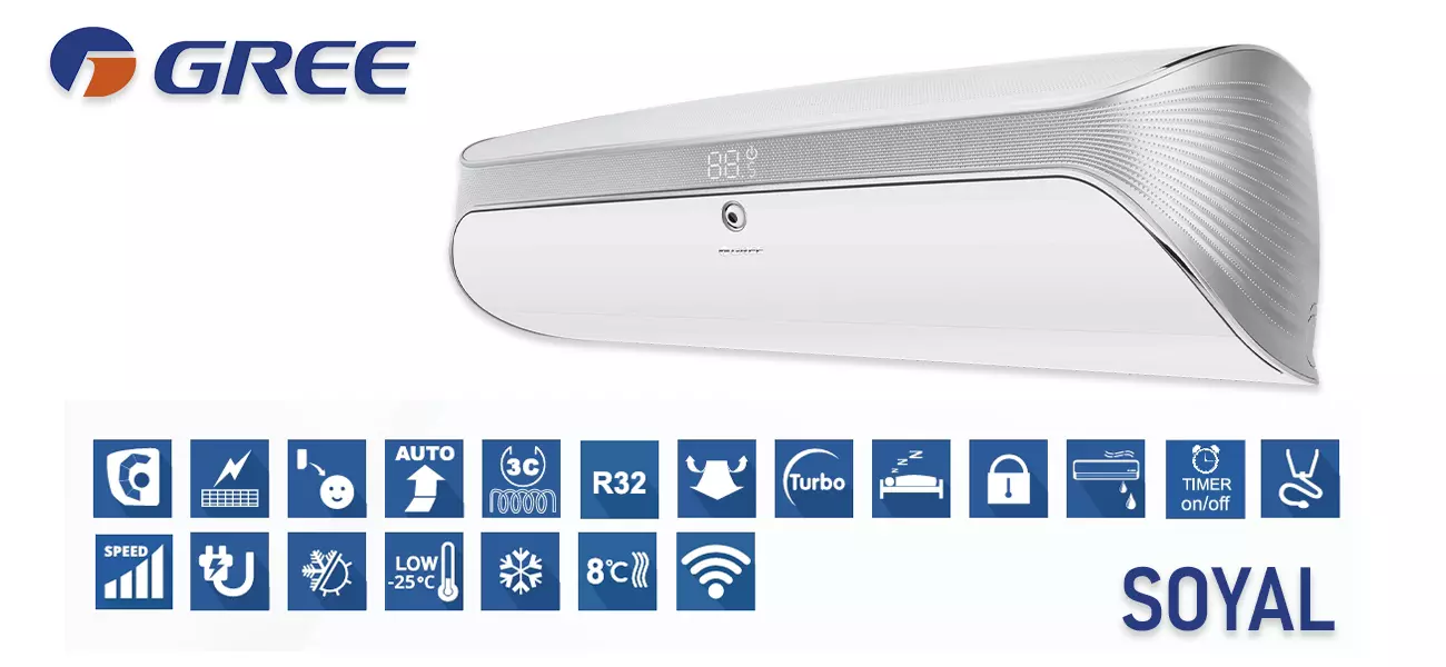 Кондиціонери Gree SOYAL Inverter – це інверторні спліт-системи з ексклюзивним дизайном, які зможуть відмінно доповнити будь-який інтер’єр і стати його прикрасою. Запам’ятовується футуристичний дизайн цієї серії не залишить байдужим поціновувачів оригінальної і незвичайної кліматичної техніки.